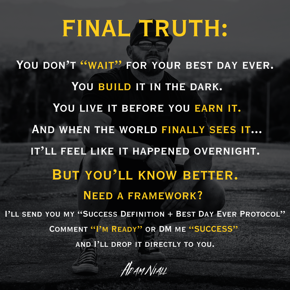Success + Best Day Ever Protocol CLICK HERE FOR THE FREE GUIDE! —-> FREE GUIDE Discover more from Subscribe to get the latest posts sent to your email. Type your email… Subscribe Share this: Click to share on X (Opens in new window) X Click to share on Facebook (Opens in new window) Facebook Like Loading... Related Leave a comment Cancel reply Δ